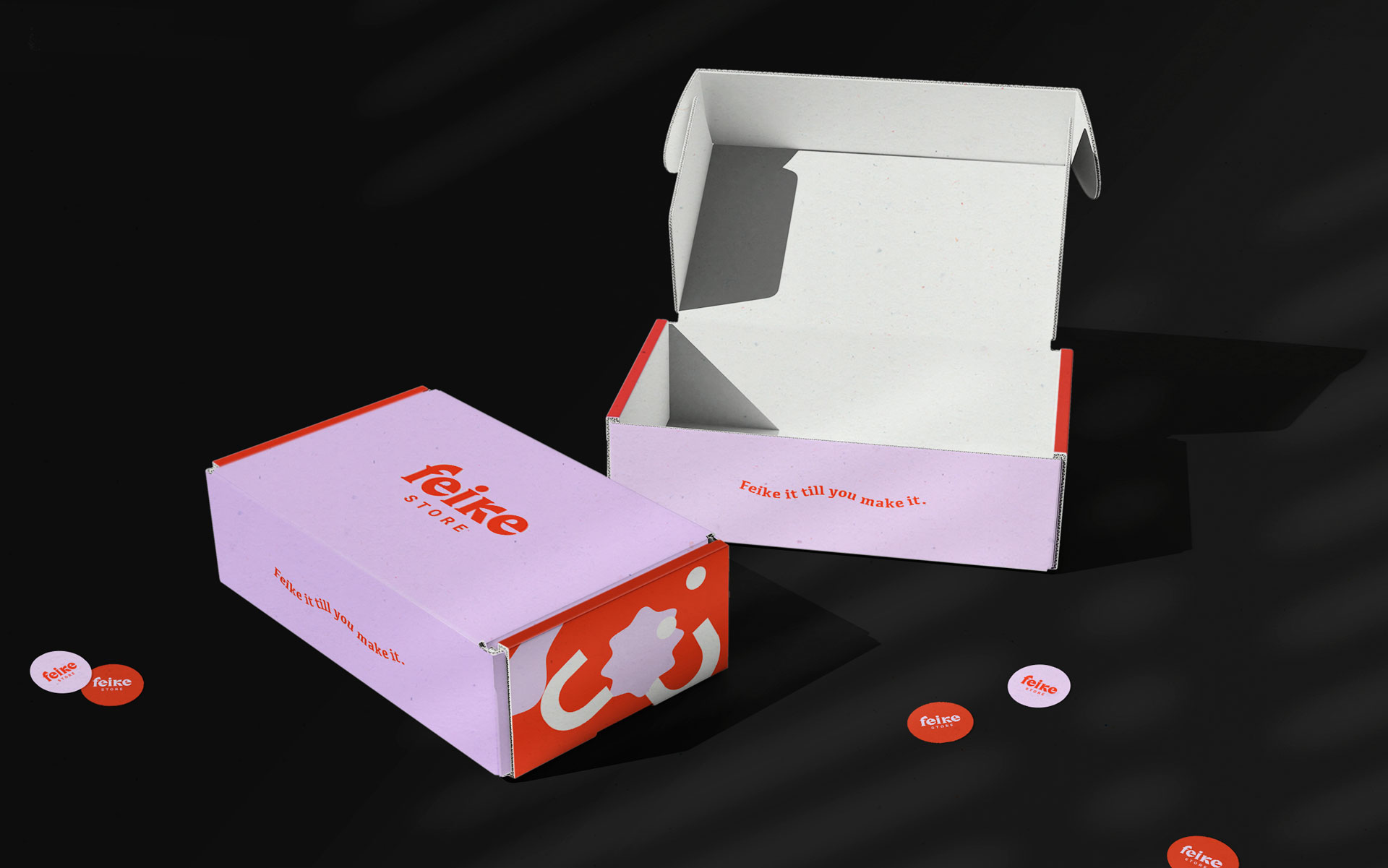 do logo e a forma caída do F. “Feike it till you make it” foi também definido como assinatura de marca. A
